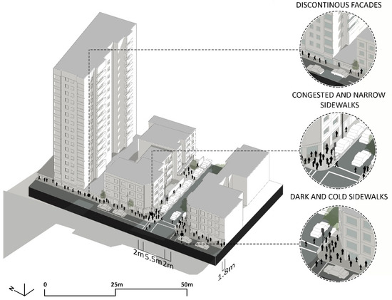 Detail of a street located in Case D (high-rise mixed-use neighbourhood). Source: authors’ own.