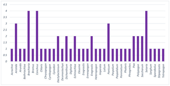 Among flowering plants, Poaceae is a successful family, manageable in every habitat and phytogeographical zone of the globe due to its compliance with every climate, covering about 20% of the land surface. In monocots, about 15% is shared by Poaceae [8], affording them ecological predominance. From the nourishment point of view, grasses are the prime source of nutrient supplements for almost all animals, including humans. They supply the majority of human diet and a variety of livestock feedstuff in many countries’ urban and suburban contexts. Globally, grasses and natural pastures are used for cattle as forages. Locally native flora of Poaceae constitute a valuable nutritive source for livestock, along with preserving soil integration, moistness and porosity for air infiltration. Grass species are foremost a source of income, particularly for rural people around the world, providing effective cereal components for humans and livestock. In ecological terms, wild grasses have a very important role in the ecosystem as they are involved in the formation and conservation of soil texture by supplying humus to the soil on a regular basis, fulfilling nutrient requirements and improving primary production in all types of climates, from alpine to xeric habitats.