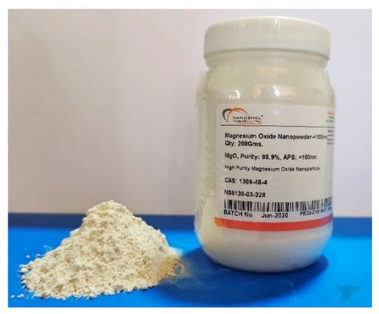 The second step involves transesterifying hybrid oil for two hours at 60 °C while utilizing a MgO nanocatalyst loaded at 2 % (w/w), methanol to oil molar ratio of 10:1 (v/v), and stirring rate of 300 rpm. After the two-stage transesterification reaction, the MgO nanocatalyst is filtered and can be reused, and methanol is recovered by heating (methanol will boil at 64 °C). The MgO nanocatalyst is less than 40 nm in size. It is purchased from Intelligent Materials Pvt. Ltd., Punjab, India. Magnesium Oxide (MgO) was used as a nanocatalyst because it is economical, environment friendly, and recyclable (refer to Figure 3). CaO catalyst has also shown reusability during transesterification process [67]. Thus, an acid pre-treatment step followed by a MgO nano-catalyzed step has been used to convert hybrid oils samples into esters. The details of MgO nanoparticles are presented in Appendix A.
