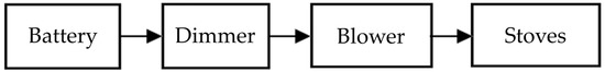 The use of a dimmer serves to increase and decrease the electrical voltage of the blower. The speed of the dynamo blower (in a rotating state) helps to regulate the amount of air. The amount of air entering the furnace affects the heat generated by the stove. To set a small blower speed, a dimmer with a current of 12–24 V was required.