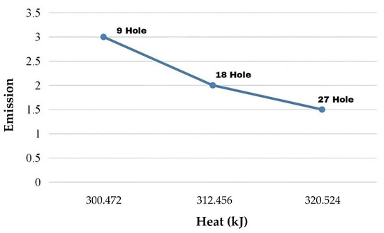 For testing emission gases of furnaces, by the standards provided by the National Standardization Agency [25], the emission gas was low, at 67,000 ppm. However, the stove with 27-holes produced the most negligible exhaust emission gas, so its use was more efficient. Each stove had different emissions results, but the difference was not accurate.