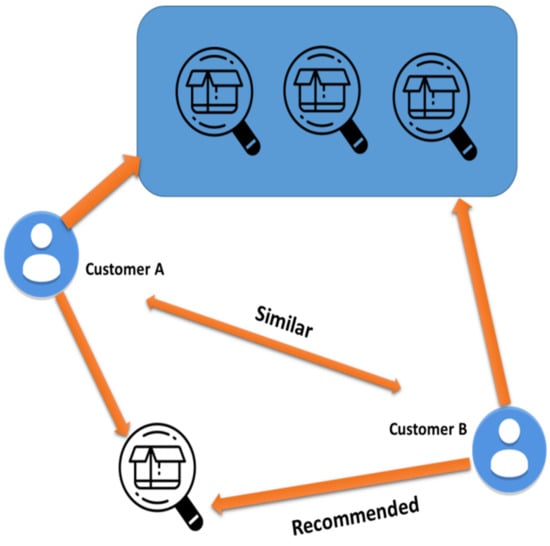 Figure 1 shows Collaborative filtering (CF) is a strategy built on consumers exchanging viewpoints. The underlying premise of this approach is that it is possible to reasonably forecast an active user’s preference for a product that he has not yet assessed by using the views of other users. These techniques make the assumption that if customers have the same preferences for one group of products, they will likely have the same preferences for a different group of products that they have not yet assessed. Therefore, collaborative filtering approaches suggest to the present user the products liked by users who have similar likes to him, i.e., comparable users.