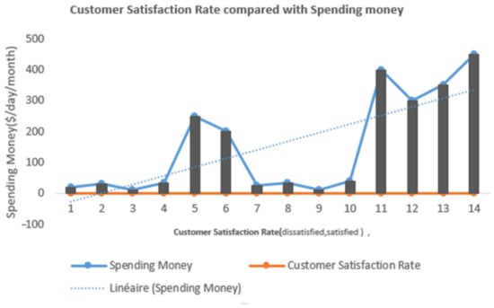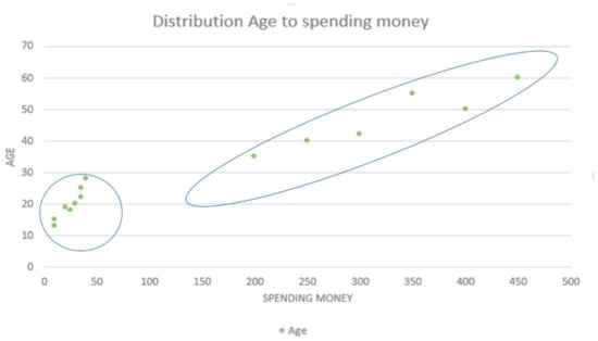 Figure 9 show us the spending money for each age of the genders. We conclude that the people older than 30 had considerably more spending money and the people younger than 30 had much less spending money, so we deduce that the age has a very important role in affecting the amount of spending money.