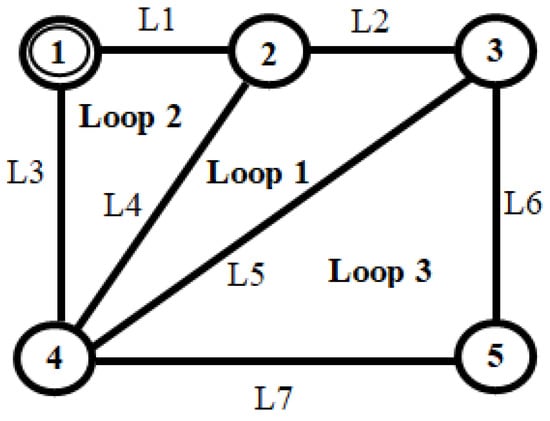 Figure 1 shows an example of the three-loop network []. The components of each loop are as follows.