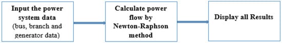 In this study, PF is calculated using the MATPOWER simulation toolbox implemented under MATLAB. MATPOWER was originally developed by Ray Zimmerman and his colleagues at Cornell University, under the direction of Robert Thomas, in 1997. This tool presents a powerful set of programming under MATLAB, ensuring the calculation of the PF and the determination of the optimal power flow (OPF) for a given simulation state. Thus, it can be applied while being combined with metaheuristic optimization tools in terms of validation of the OF of the DN []. The MATPOWER process is characterized by its flexibility during use and also when modifying the original code. The use of MATPOWER for solving both PF and OPF problems requires an adequate and correct implementation of the different case information of such a studied network []. The process of MATPOWER is presented in three steps, as shown in Figure 2.