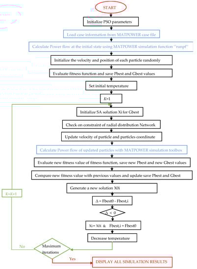 The remainder of the paper is divided into four sections as follows. The first one, which is Section 2, provides a mathematical formulation of the optimal DN reconfiguration problem. The proposed hybrid SAMPSO optimization method is presented in Section 3. Section 4 reports and illustrates the simulation results obtained from the investigation of the five scenarios. Finally, Section 5 includes some concluding remarks.