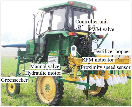 - Aghkhani, A.D.M.; Motie, M.K.J.B. Fabrication and evaluation of variable rate fertilizer system. J. Agric. Mach. 2015, 5, 251–260. [Google Scholar]