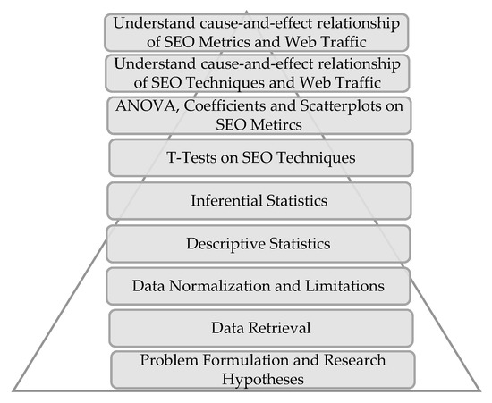 There are countless sources for a website to increase its traffic. The most important, as presented in the Google Analytics App, are: Organic Search, Social, Direct, Referral, and Paid traffic [1,2]. Organic traffic is the traffic that comes from users who use search engines to find (free of charge) what they are looking for. The results presented after each keyword search consist of a list of available websites that use the keyword searched [3]. Thus, the traffic of a website depends on its ranking in search engines and its organic traffic. Since ranking in organic results cannot be paid, a high organic search ranking is, in most cases, hard to achieve [1]. In order for a website to achieve high rankings in web searches, it has to meet certain specifications—ranking factors as they are described in the guidelines that are regularly published by the companies that own the search engines [2]. These factors are known, but their impact on search ranking has not been fully reported, since search engines neither make public their ranking algorithms nor disclose information regarding the factors used in the ranking [4]. However, the dominant SEO techniques and their impact on organic traffic can be found in several studies [5,6].