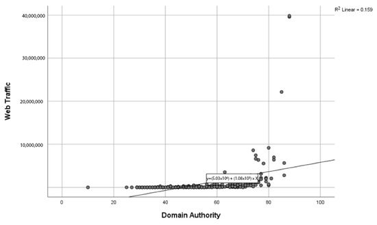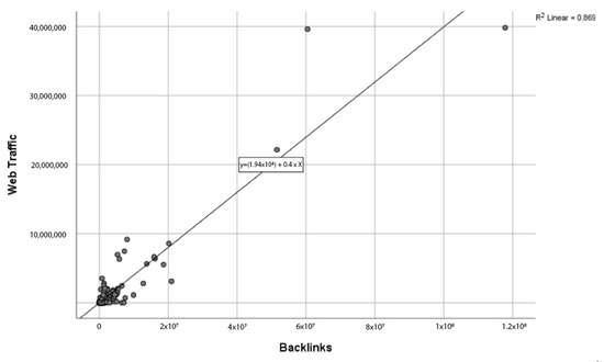 Conducting descriptive regression analysis and t-tests accordingly in Section 4, we confirm the research hypotheses listed in Section 3.3. Our study underlines that on-page SEO impacts airlines’ website traffic on a great scale. The same applies to off-page SEO, where we confirm that backlinks influence airlines’ web traffic. More specifically, when the beta value of backlinks increases by one unit, the web traffic will be increased by 0.399 units. From the organic keywords point of view, when the beta value of keywords increases by one unit, the airlines’ web traffic will be increased by 10.24 units, respectively. On the contrary, website speed seems not to have any impact on airlines’ web traffic, although mentioned as an important SEO factor in Section 2.1.11. In addition, through our analysis, it was found that there is a strong connection between backlinks and domain authority.
