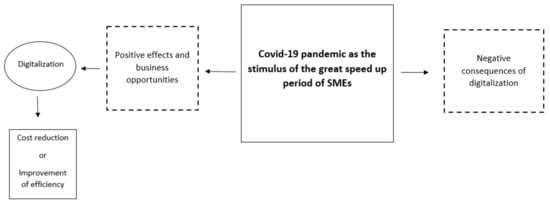 In general, the degree of digital transformation is differentiated among SMEs and this has contributed to the development of the following three categories: (a) SMEs with a high standard of digital maturity, which help to the mitigation of the challenges by accelerating the transition to digitized enterprises, (b) SMEs that face challenges of liquidity and, (c) SMEs that present very limited digital literacy but are supported by a high level of social capital. Other study findings suggest that SMEs’ innovation practices have a significant impact on their performance and survival. Empirical findings reveal that innovation capability is essential for an SME’s survival during a crisis and confirm the existence of a positive impact of marketing innovation and process innovation on the financial performance of SMEs during the COVID-19 pandemic [,,].