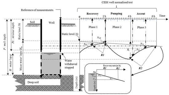 - Phase 1: Recovery. In this phase, it is necessary to stop the drawdown by users if it is in progress. Then, the ascent is followed with the help of a probe for at least 2 h. If the value of the ascent after 1 h is less than 1 cm, it is valid to simply select the static level (NS) for the value of the water level below the mark. Otherwise, it is necessary to continue the operation until 2 h have passed.