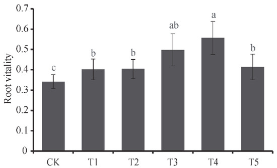 The root vitality in different in different simulated SKF-S. Different letters represent significant difference (p < 0.05) between each group.
