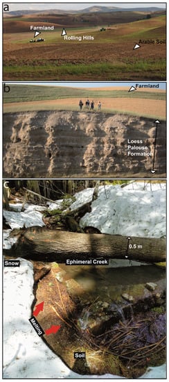 - Brooks, E.S.; Boll, J.; McDaniel, P.A. Hydropedology in seasonally dry landscapes: The Palouse region of the Pacific Northwest, USA. In Hydropedology; Henry Lib: Seattle, WA, USA, 2012; pp. 329–350. [Google Scholar]