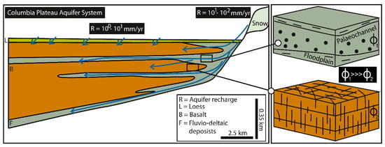 - Pritchard, C.J.; Gaylord, D.R.; Adams, D.B.; Ernst, S.; Hermanson, M. Role of Quaternary glacial-outburst megaflood paleochannel deposits in a basalt-dominated aquifer system in the West Plains area of eastern Washington, USA. Hydrogeol. J. 2020, 28, 921–939. [Google Scholar] [CrossRef]
