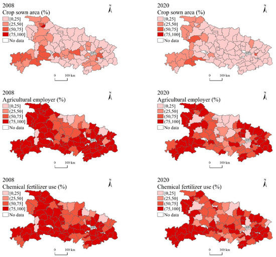 - Tang, Y.; Lu, X.; Yi, J.; Wang, H.; Zhang, X.; Zheng, W. Evaluating the Spatial Spillover Effect of Farmland Use Transition on Grain Production—An Empirical Study in Hubei Province, China. Ecol. Indic. 2021, 125, 107478. [Google Scholar] [CrossRef]