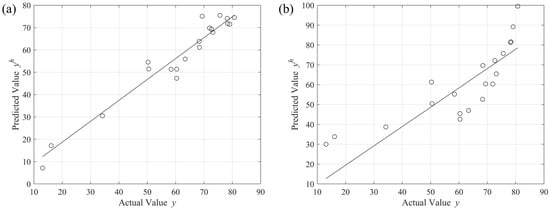 Predicted value versus actual value plot for the yield of cellulose using (a) MLS method and (b) MPLS method.