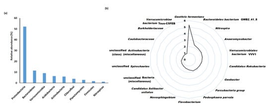 - Coates, J.D.; Ellis, D.J.; Gaw, C.V.; Lovley, D.R. Geothrix fermentans gen. nov., sp. nov., a novel Fe(III)-reducing bacterium from a hydrocarbon-contaminated aquifer. Int. J. Syst. Bacteriol. 1999, 49 Pt 4, 1615–1622. [Google Scholar] [CrossRef] [PubMed]