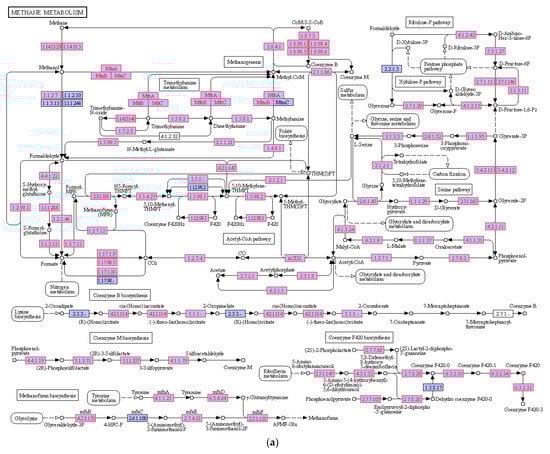 Hydrocarbons are known to be a severe threat to water bodies. The degradation of hydrocarbons via metabolic capabilities of various microbes could be a promising approach for treating hydrocarbon-polluted water [38]. In-depth metagenome sequence analysis revealed the occurrence of genes responsible for hydrocarbon degradation (Figure 4). The present sample was found enriched with methane metabolism enzymes. Methane contributes nearly 20% to the greenhouse effect, and lakes are the primary methane emission sources [39]. Thus, deciphering the genes mapped to the complete degradation pathway of methane would be helpful in designing strategies to diminish its harmful effect.