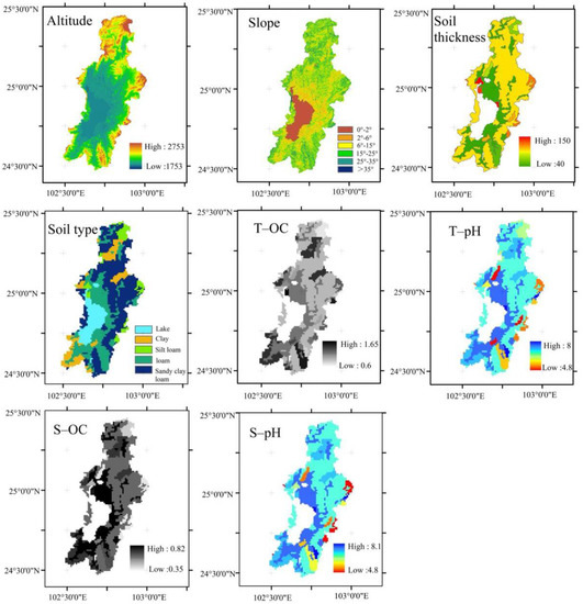 The spatial data of altitude, slope, soil type, soil thickness, soil organic carbon content and soil pH of the Dianchi Basin.