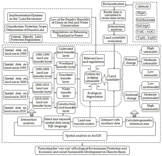 On 27 September 2021, the Government of Yunnan Province issued the “Implementation Opinions on the Lake Revolution”. The government’s determination to lake protection is unprecedented. Under such a new background, this paper attempts to organically combine lake ecological environment protection with the rationality evaluation of land use change for the first time, construct the rationality judgment criterion of land use change, and take Dianchi Lake as the research area to carry out the rationality study of land use change. It is of great theoretical value for further enriching the research of rationality evaluation of land use change. At the same time, it is of practical significance to effectively restore the ecological environment of Dianchi Lake, realize the sustainable utilization of land resources in mountainous areas and enhance sustainable economic and social development.