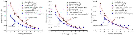 where refers to the permeability loss when the confining pressure is i in the same loading and unloading stage; indicates the permeability when the confining pressure in the loading stage is i; and refers to the permeability when the confining pressure at unloading stage is i.