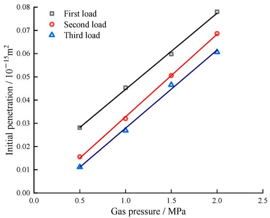 Gas pressure has an important influence on the permeability of coal samples, especially on the initial permeability of coal samples. Figure 10 shows the change trend of the initial permeability of coal samples under different gas pressure.