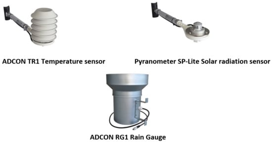 - ADCON. Sensors. Available online: https://www.adcon.com/products/sensors-284/ (accessed on 10 September 2021).
