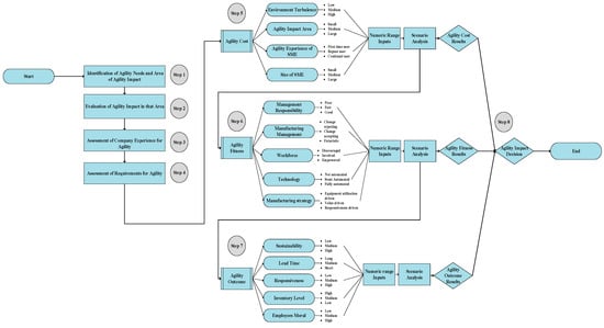 Studies conclude that more than fifty percent of companies fail to employ agile methods during the implementation stage [7]. Reasons of failure vary from wrong assessment of potential challenges, inability to assess capacity of the organization to take up agile manufacturing, and fragile cost and benefit analysis. Small and medium enterprises (SMEs) struggle with the ability to make informed decisions in the implementation stage of agile manufacturing. Researchers have developed various models, methodologies, and frameworks in the context of agile manufacturing [8,9,10,11,12,13,14,15,16]. Their focus is ranging from AM drivers, AM enablers, AM impediments, AM assessment, and AM implementation to AM performance outcomes. The limitations of these models, methodologies, and frameworks are as follows. They focus exclusively on individual AM issues, for example, on the theoretical side, the authors discuss the factors that drive companies to opt for AM, the factors that enable companies to become agile, and the barriers against AM. On the practical front, the authors discuss various frameworks that focus on the measurement of agility of a company, ways of AM implementation, and the relationship of AM with performance outcomes. Frameworks on these individual fronts do not provide sufficient guidance to the companies regarding whether they should go for AM implementation or not by providing them explicit direction. This results in wastage of resources when implementation fails in the middle of a venture. Therefore, it is desirable to develop an impact assessment framework that can help practitioners to decide the viability of the agile manufacturing implementation well before committing resources to the project.