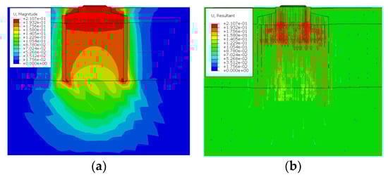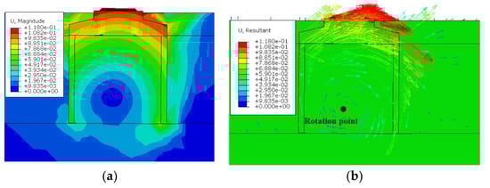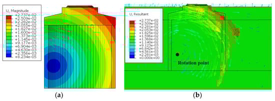 Displacement of SPBF under horizontal–moment load. (a) Displacement contour. (b) Displacement vector diagram.