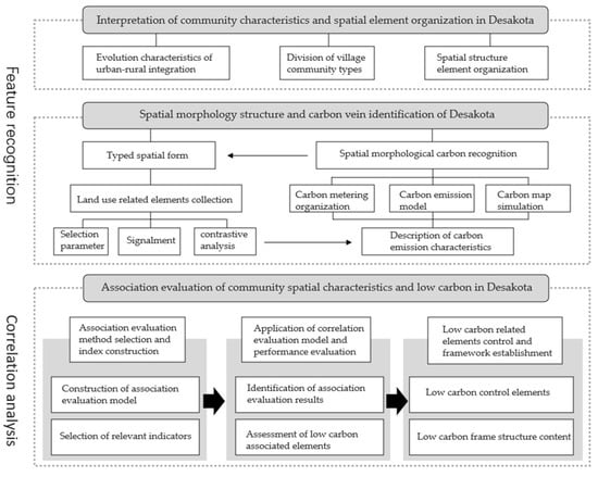 Theoretical principles: desakota villages and towns and their elements and compositions were described. To fully understand the desakota village-and-town communities and the causes of high carbon, their spatial and temporal evolutions were analyzed, and their basic characteristics were interpreted, including complex demographic structure, diversified industrial structure, frequent element flow, and dynamic spatial development. On this basis, the complex and diversified desakota village-and-town communities were classified into different types. In this article, the spatial form characteristics and carbon emission intensity of the desakota village-and-town communities of different industry types were analyzed based on sample desakota village-and-town communities from the perspective of industry types. Based on the relevant theoretical research, a basic analysis was conducted on the composition of the spatial form elements and that of the carbon cycle system. From the perspective of the composition of the spatial form elements, five major elements, basis, boundary, group, nodal point, and traverse, were included; from the perspective of the carbon cycle system, the fixed carbon source, the mobile carbon source, the process carbon source, and the natural carbon were included. The interaction of these two elements influenced and determined, to a certain extent, the basis for the construction of the low-carbon correlation model of the village-and-town communities.
