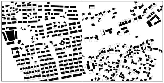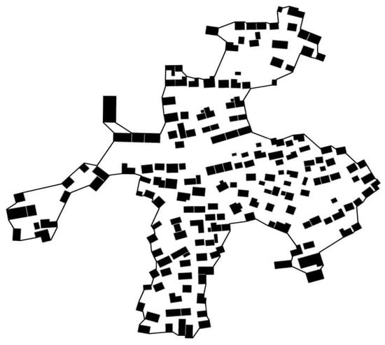 For the measurement of the total area of construction land, the boundary of the built environment of village-and-town communities needs to be clarified first; that is, it is connected by the boundaries of building units (entities), and it is formed by the boundaries of the transition area between the units. Among them, the boundaries of the transition area determine the size of the overall boundary [].