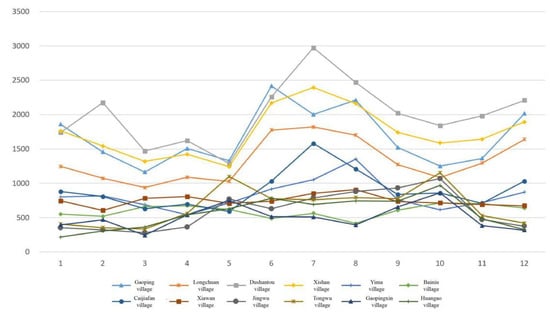 The carbon emission values of the village-and-town communities are related to the values reflecting the level of energy consumption activities in the region. In terms of the carbon measurement, the accounting method based on the energy consumption amount is most suitable for village-and-town communities. It is easy to obtain the relevant basic data. In this study, the scope of measurement was defined mainly for carbon emissions from production activities, mobile carbon sources, and natural carbon in fixed carbon sources.