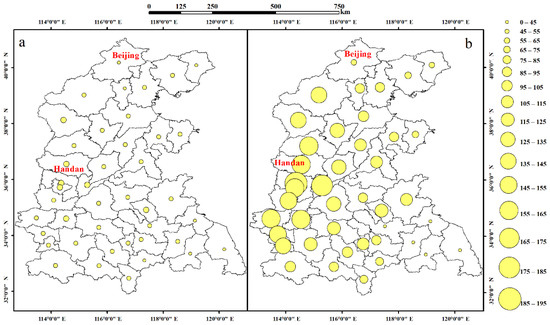 According to the air quality during the five years of 2015–2019 in Handan, severe air pollution usually occurs during October to March (next year), and severe pollution days accounted for over 95% of the days in these months every year. The annual mean PM2.5 decreased gradually from 96.5 μg/m3 in 2015 to 71.0 μg/m3 in 2019 in Handan and the decreasing rate slowed down from 2018 (74.6 μg/m3) to 2019 (71.0 μg/m3), similar to the conditions in the BTH region and surrounding areas (the annual decreasing rate was 7.8–11.8% from 2015 to 2018 and 1.7% from 2018 to 2019) (http://117.78.34.120:8007/BigData/Main (accessed on 5 September 2022)). Therefore, given the meteorological conditions and declining trends of air pollutants, the comparison of air pollutants during Stage III between 2020 and 2019 can efficiently reflect the impact of the COVID-19 lockdown on air quality.