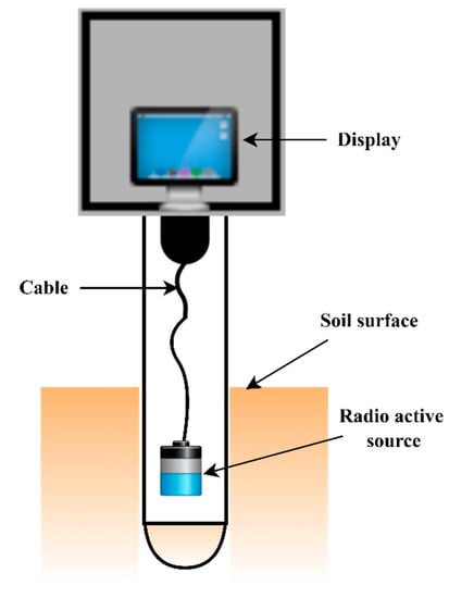 Another measuring technique, gamma-ray attenuation, is based on radio signals and measures soil water content with a high resolution up to a soil depth of 25 mm (Figure 3) or less in field and laboratory research. Additionally, its non-destructive nature enables repeated assessments of the physical soil parameters in the same site at various periods [86,87]. This technique is sensitive to the soil bulk density changes and SSM. Gamma rays are riskier to operate than neutron scattering methods with higher operational costs [57].