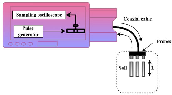 Schematic diagram depicting moisture measurements using the TDR method.