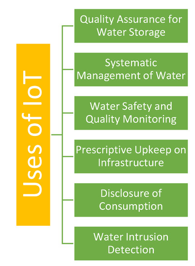 - Malhotra, V. IoT-based smart water quality monitoring system to expand sensors life and battery power. In Sustainable Communication Networks and Application; Springer: Singapore, 2022; pp. 153–162. [Google Scholar]