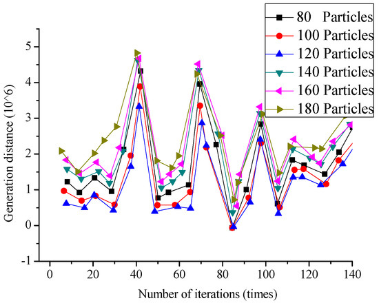 Figure 8 shows the variation diagram of the generation distance and the number of particles and the number of iterations.