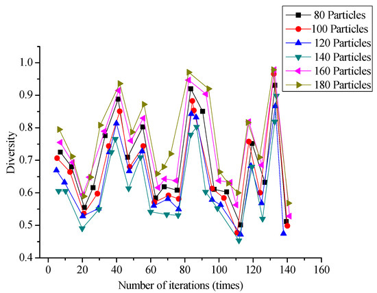 Figure 9 shows the variation diagram of the diversity and the number of particles and the number of iterations.