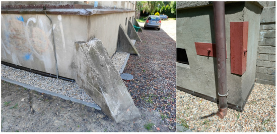 Another factor that threatens the sustainable development of Katowice is tremors due to mining [99], a common but low-power phenomenon. Over 170 tremors are recorded annually in the area of Katowice; 14 tremors were registered in May 2022 alone [100]. Common events during these tremors include moving furniture and other household items and waking residents at night, which contributes to, among other things, a lowering of the sense of security and is a direct cause of anxiety reactions among residents. Deformations in the earth’s surface due to the exploitation of hard coal causes social, legal, and administrative conflicts. Another problem, tied to the additional costs of securing buildings against mining damage (Figure 5), is the compromise of their structures [101,102,103]. The interests of the residents are defended by numerous law firms specializing in mining damages. In the Murcki residential district, there is a conflict between the residents and the Management Board of the KWK Murcki Staszic-Wujek mine. Residents disagree with further hard-coal mining under their homes. Despite a negative opinion issued by City Hall, the mining authorities approved further coal extraction. As a result of coal mining, so far, numerous cracks in residential buildings have appeared, and the houses have canted by as much as 0.5 m. The mine has refused to pay the due compensation for damages. Some lawsuits take years, and the mine has delayed, more than once, the repair of damage [104].