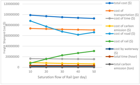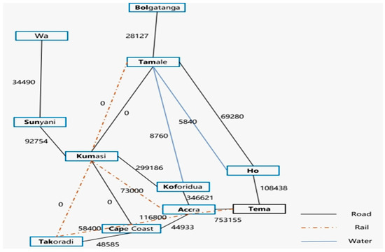 26]. This anomaly in the transport matrix impacts the general expenses charged per ton per kilometer in different travel modes. Thus, a critical objective for the sustainable improvement of the freight transport sector is to promote the substitution of the road mode with different transport mode choices [