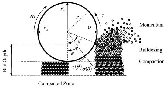 During the emergency stop of the vehicle, the main energy consumption modes of vehicle kinetic energy include dynamic energy conversion between wheels and aggregate particles, compaction resistance, bulldozing resistance, air resistance and ramp resistance. Except for air resistance and ramp resistance, these energy consumption modes are all related to the amount of wheel subsidence. The resistance to the wheel is shown in Figure 8.