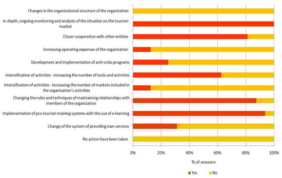 Actions taken by Polish DMOs to limit the effects of the crisis related to the COVID-19 pandemic. Source: own elaboration based on the survey.