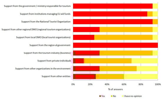 Expectations of Polish DMOs in terms of support from entities in the close and distant environment. Source: own elaboration based on the survey.
