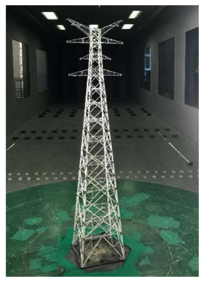 Field measurement is one of the most direct and effective methods. Ballio et al. [5] conducted a field measurement on a transmission tower of 100 m high that was built more than 60 years ago. The study shows that the responses of the transmission tower in the crosswind and along-wind directions are of the same magnitude. Liu et al. [6] analyzed the coupling phenomenon between the tower and line using field measurements and discussed the occurrence mechanism between the tower frame and conductors. He and Yang [7] obtained the first natural frequency and corresponding modal shape of a transmission tower by field measurement. Although field measurement has the ability to obtain an on-the-spot, wind-induced response of the transmission tower, it is costly and time-consuming due to the particular location of the transmission tower, especially in mountainous areas.