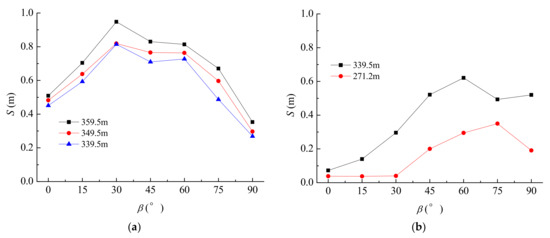 Mean displacement at different wind incidence angles: (a) y direction; (b) x direction.