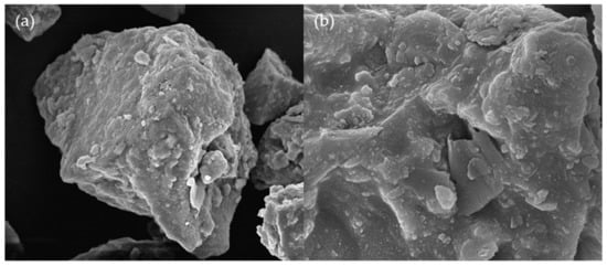 Sulfide ore samples used in this study were collected from Dongguashan Copper Mine in Anhui, China. Pyrite was purchased from Strem Chemical Co., Ltd., Boston, MA, USA. The collected sulfide ore and pyrite were dried in a vacuum at 80 °C for 24 h. The samples were crushed and sieved in the range of 96–120 μm before the experiments. An XRD (X-ray Diffractometer) is mainly used to measure powders or crystals, with the advantages of convenience and efficiency. In this paper, XRD was applied to analyze the composition of sulfide ore powders. The XRD (DY5261/Xpert3) machine was manufactured by CEM Corporation, USA. The scanning range of the experimental test was 5~90°, and the scanning interval was 5°/min. The XRD analysis results showed that the main components of sulfide ores included pyrite (FeS2), Fe0.91S, SiO2, Fe3O4, and Fe3S4 (Figure 1). Further, a Scanning Electron Microscope (SEM) was utilized to take pictures of sulfide ores; it could be seen that the surface of the ore sample was comparatively flat and the surface of the large particle ore sample was attached with many small particles (Figure 2). The agglomeration effect of small particles may be induced by the high activity of the sulfide ores, which reduces their surface free energy []. The SEM (Quanta 250) was manufactured by FEI Company, Hillsboro, OR, USA. In addition, the elements contained in the sulfide ores were mainly Fe and S.