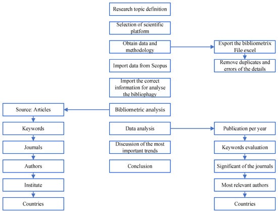 To address our research area, we use bibliometric methodologies to take a quantitative approach. A bibliometric analysis collects and assesses quantitative bibliographic data produced from scientific publications []. Moreover, a bibliometric analysis provides a descriptive measurement of the primary authors published in a particular journal, the number of citations from that journal and others, and the most crucial topic. In addition, it includes a co-citation analysis []. The significance of this analysis is explained by the fact that the assessment of the citation trend enables us to understand the connection of the area of interest with other research disciplines [].