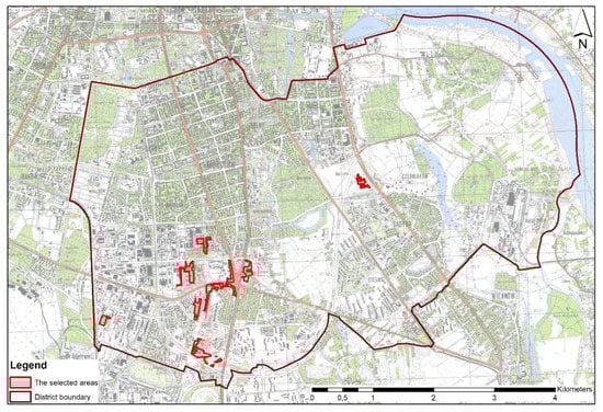 Given recent emergencies, the rational management of land reserves has become an even more significant challenge for many cities worldwide [22,23,24]. In addition to brownfield sites, green spaces have begun to play a key role in times of emerging crises, as evidenced in the literature [25,26]. They act both as reserves for the construction of new infrastructure facilities, but also as friendly spaces for residents to spend time. They are essential for epidemiological constraints, fulfilling a natural or ecological role [8,24] and, above all, fulfilling a social role [25]. It even highlights the critical role of urban parks during the pandemic from the perspective of the urban built environment and mental health [26,27].