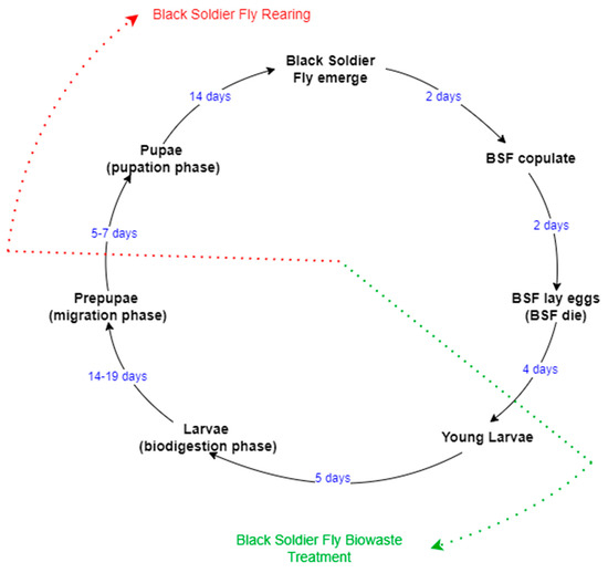 Life Cycle Stages and Waste Management Phases of the Black Soldier Fly. (Source: Authors).