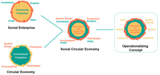 Social enterprises aim to “use business principles to achieve societal good and make a positive change in the world,” but they do not automatically internalize negative environmental impacts [57]. SCE, therefore, counteracts the potential weakness of the CE and social enterprise models. SCE combats the underutilization of social resources such as IFÉs by aligning with grassroots community action. It also incorporates attributes suitable for low-income countries, such as low-capital operations, simple technology, and labour-dependent activities.